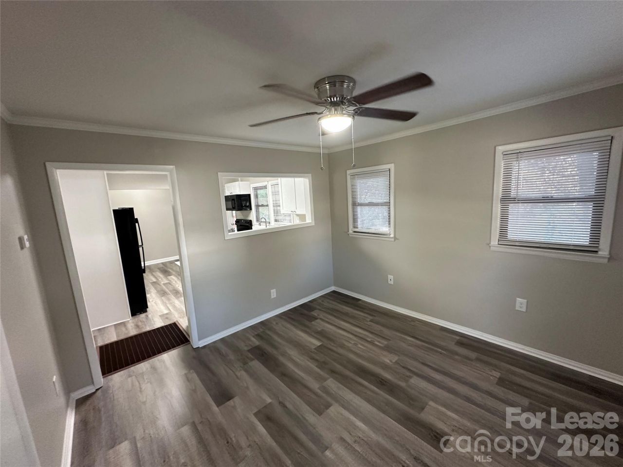 You will fall in love with this cozy, one-story 2 bedroom 1 bath home, offering 780 sq ft of comfortable living space!Step onto the inviting rocking-chair front porch, where you can relax with friends and family.Inside, the living room features neutral paint and LVP flooring with a ceiling fan, creating a warm and welcoming retreat. The upgraded kitchen boasts white shaker cabinets, a quartz countertop, and modern black appliances, including a refrigerator, range, dishwasher, and microwave. Both bedrooms are accented with carpet and ceiling fans, while one bedroom adjoins the updated bath, which includes a tub surround, vanity, elongated toilet, and stylish fixtures. For added convenience, washer and dryer hookups are available in the laundry closet.Located just minutes from I-85 and major highways for quick access to restaurants, shopping, and more.